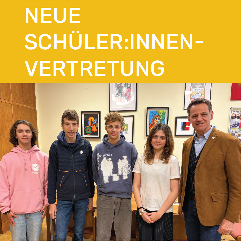 Am Freitag, 3.10.2025, fand die diesjährige Schulsprecher:innenwahl statt und Melanie Parzer (8dk) wurde - wie im Vorjahr - zur neuen Schulsprecherin gewählt. Eugen Stephan Kindermann-Muster (5ew) wurde zum ersten Stellvertreter bestimmt, David Toplak (7dk - 2. Stellvertreter) und Mario Marijanovic (6aw - 3. Stellvertreter) komplettieren...